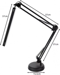 Lampa je vybavena pevnou svorkou, která umožňuje její upevnění na různé povrchy, nebo ji lze postavit na plochu díky praktickému podstavci.
