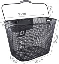 Koš je vyroben z odolného materiálu a je schopen unést až 6 kg a objem 15 litrů. Vhodný pro různé druhy kol, jako jsou městská, turistická nebo horská kola s tlumičem nebo bez něj.