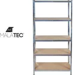 Robustní skladový regál MALATEC s rozměry 220 × 100 × 45 cm nabízí 5 nastavitelných polic z MDF a ocelový pozinkovaný rám s vysokou stabilitou. Každá police unese až 175 kg (celkem 875 kg), montáž je bezšroubová a rychlá. Ideální do garáže, sklepa, dílny i skladu.