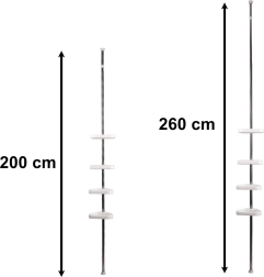 Elegantní a praktická rohová koupelnová police ideální do každé sprchy! S celkovou výškou až 260 cm je tato teleskopická police perfektním řešením pro uložení všech vašich oblíbených kosmetických produktů.
