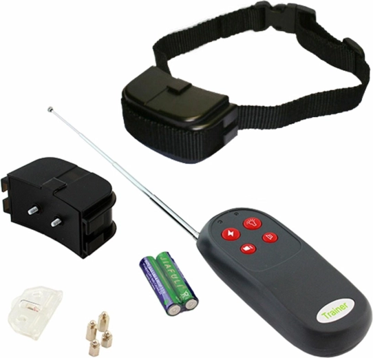 - obojek s přijímačem, vysílač, baterie, testovací dioda, náhradní krytky elektrod, návod k použití