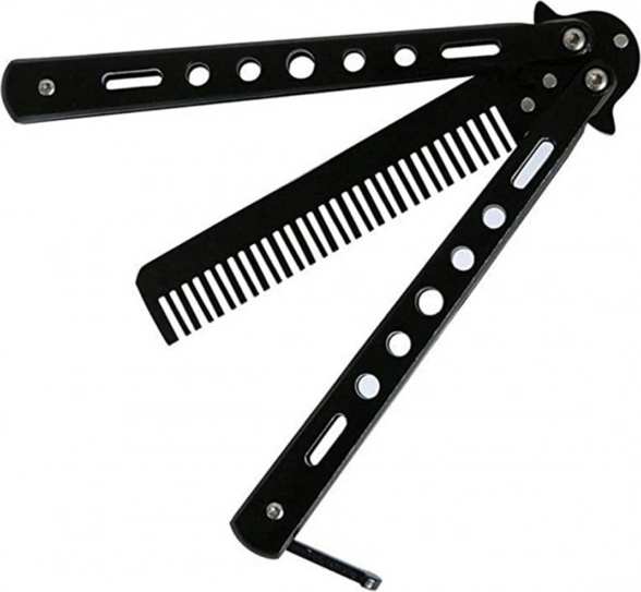Hledáte bezpečný způsob, jak trénovat manipulaci s motýlkem? Tento tréninkový nůž ve formě hřebene nabízí realistický pocit z ovládání bez rizika poranění. Tupé „ostří“ nahrazuje hřeben, takže můžete pilovat techniku, předvádět triky a zároveň si upravit účes.