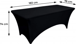 Potah MULTIGARDEN je navržen pro standardní banketní stoly 180 cm (6 ft) a okamžitě dodá vašemu prostředí profesionální a elegantní vzhled. Strečový materiál z polyesteru a spandexu pevně stáhne okraje i nohy stolu, takže vše zůstane na svém místě bez skluzů a záhybů.