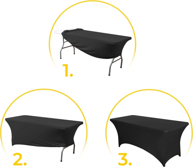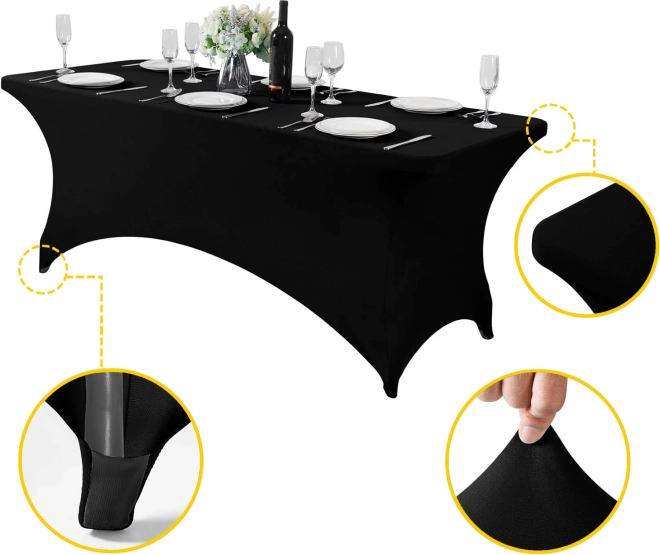Elastická směs polyesteru a spandexu se přizpůsobí stolům 180 cm a vytvoří hladký, bezchybný povrch bez záhybů i bez žehlení.