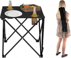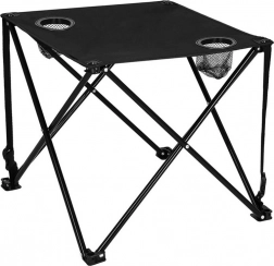 Užijte si pohodlí kdekoliv v přírodě. Tento praktický skládací stolek s pevnou ocelovou konstrukcí a textilní deskou je skvělý na kempování, rybaření, terasu i balkon. Díky dvěma síťovaným držákům udrží vaše lahve a plechovky bezpečně na místě a zabrání jejich převrhnutí.