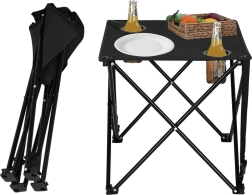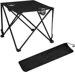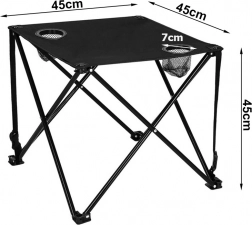 Lehký a skladný kempingový stolek s textilní deskou a dvěma integrovanými držáky nápojů je ideální na rybaření, kempování, piknik i na balkon. Nabízí stabilní konstrukci, rychlé složení do přenosného obalu a nízkou hmotnost pro pohodlné přenášení.