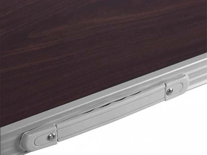 Po složení se stůl změní v kompaktní kufřík s rukojetí – ideální pro převoz v autě i přenášení na místo pikniku či kempu.