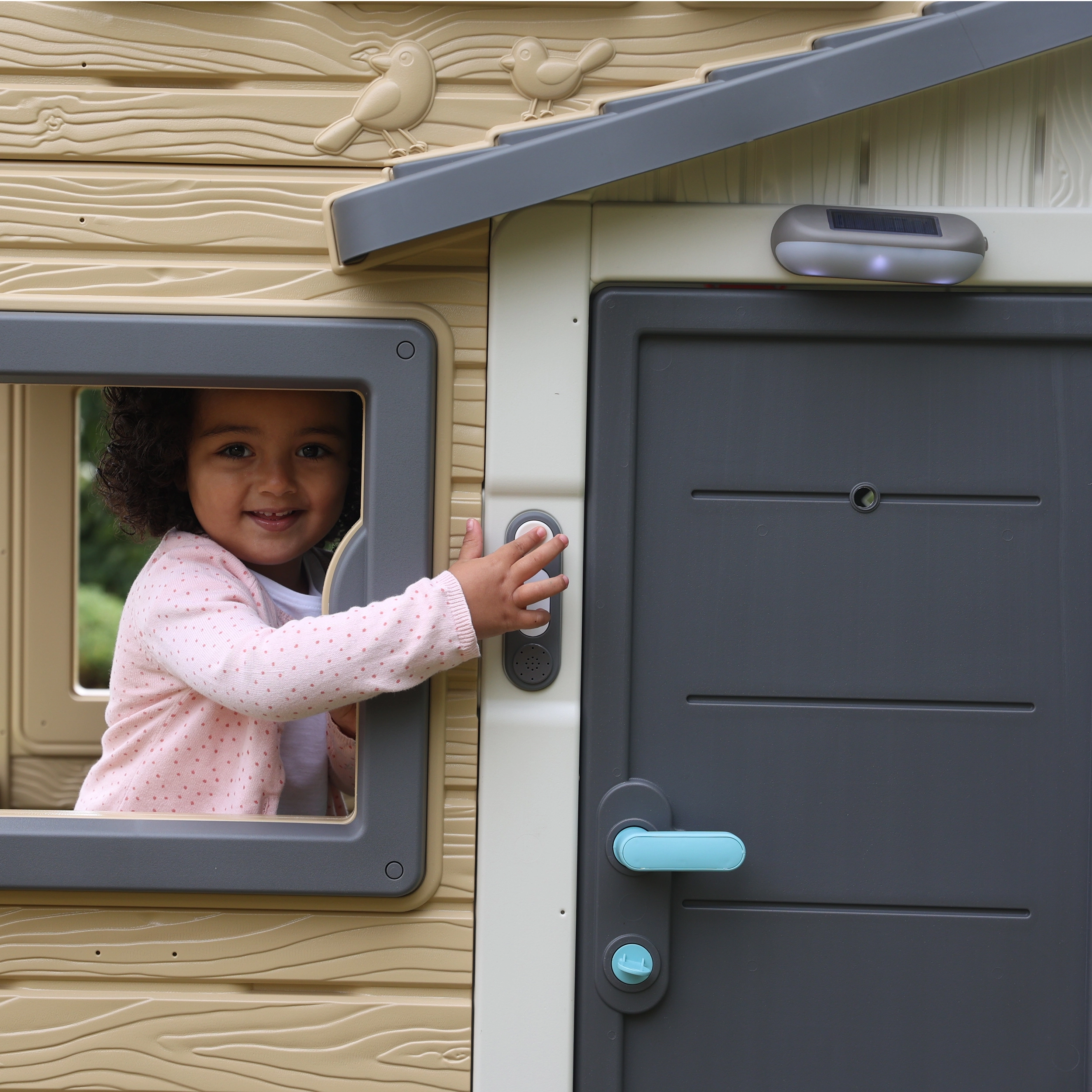 Po stisku tlačítka se ozve jasné „ding-dong“, které podpoří interaktivní hru a přivítání hostů u dětského domečku.