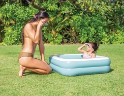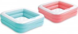 Udělejte dětem radost vlastním bazénkem, který postavíte během pár minut. Čtvercová konstrukce s vyšším okrajem je stabilní a pohodlná, zatímco nafukovací dno tlumí nárazy a zvyšuje komfort při sezení i hraní. Díky kompaktní velikosti je bazének ideální pro batolata a předškoláky.