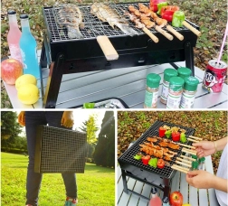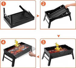 Užijte si bezstarostné grilování s tímto přenosným skládacím grilem. Jeho kompaktní design, který se snadno složí do kufříku, umožňuje snadnou přepravu a úsporu místa. Kvalitní materiály zaručují odolnost vůči povětrnostním vlivům, takže je vhodný pro celoroční použití.