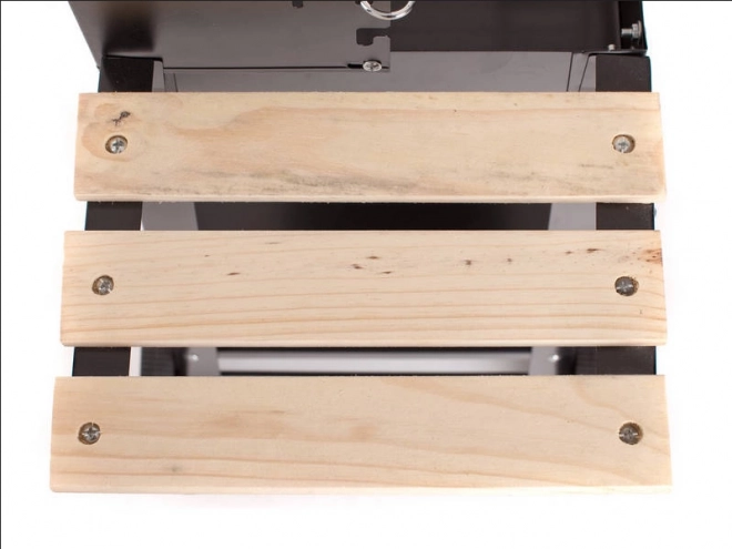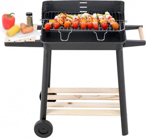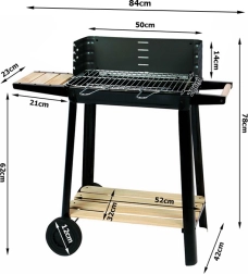 Gril je vybaven nastavitelným roštem, který lze nastavit do pěti různých úrovní, což umožňuje perfektní přípravu pokrmů podle vašich preferencí. Dřevěné police po stranách poskytují dostatek prostoru pro přípravu.