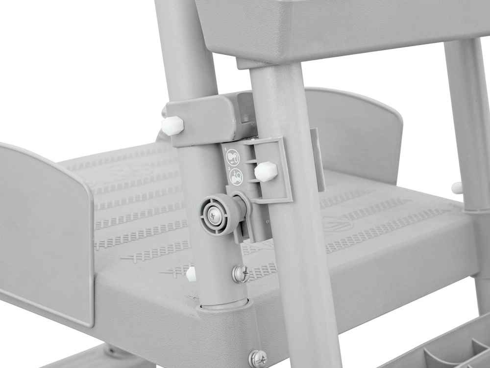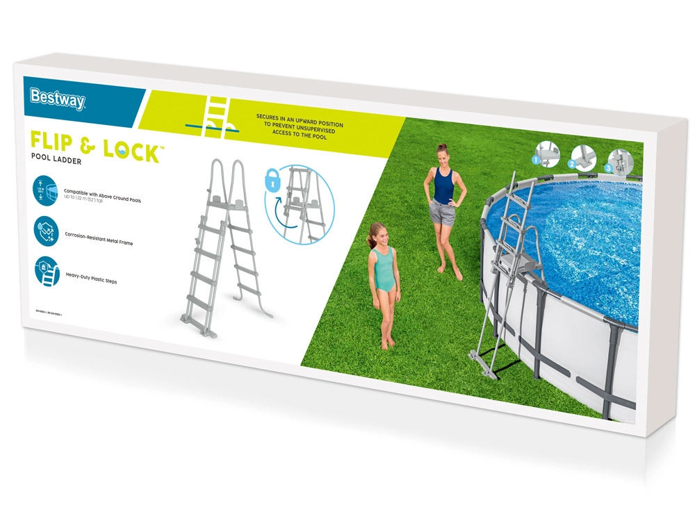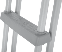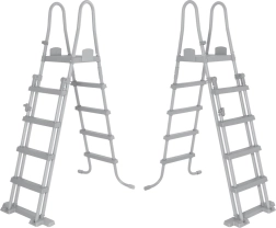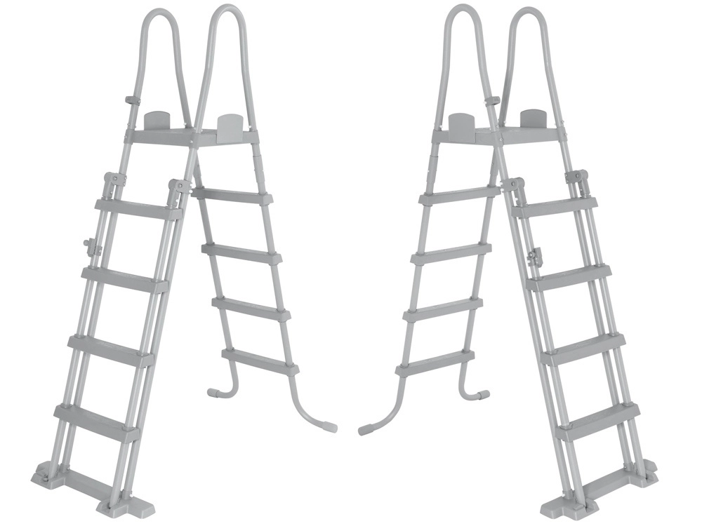 Tento oboustranný žebřík je ideální pro samonosné i rámové bazény. Díky pevné a stabilní konstrukci, protiskluzovým stupňům a odolnému antikoroznímu rámu nabízí vysokou bezpečnost a dlouhou životnost. Bezpečnostní řešení umožňuje snadné vyjmutí stupňů, když bazén není v provozu, aby se zabránilo nehlídanému vstupu dětí.