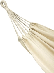Pevná konstrukce: Díky použití vysoce kvalitní bavlny a polyesteru, je houpací síť extrémně odolná a zajišťuje nosnost až 120 kg. Po složení zabere málo místa a snadno ji uložíte pomocí přiloženého obalu.