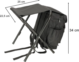 Batoh pojme vše potřebné díky velké hlavní komoře a třem menším kapsám, zatímco skládací křeslo zajišťuje pohodlné sezení kdekoliv.