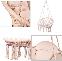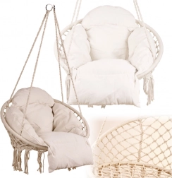 Užijte si dokonalý relax v závěsném křesle typu bocaní hnízdo s měkkým polštářem. Robustní konstrukce, nosnost 150 kg a průměr 80 cm zajišťují pohodlí i stabilitu. Nadčasová barva ecru se hodí na zahradu, terasu, balkon i do interiéru.