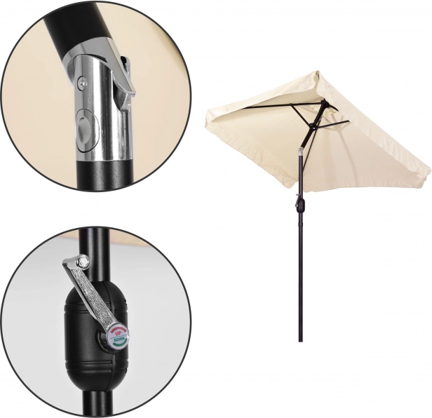 Speciální klika dělá rozevírání slunečníku jednoduchým - stačí jen pár otočení a plachta se rovnoměrně rozbalí. Díky tomuto praktickému prvku můžete rychle zavřít slunečník, když se změní počasí.