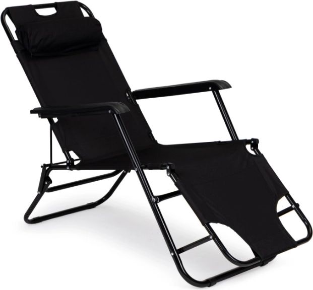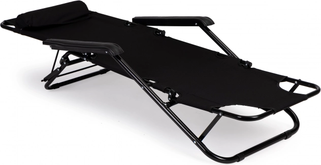 Zahradní lehátko s opěrkou hlavy, skládací konstrukce, černé, MultiGarden