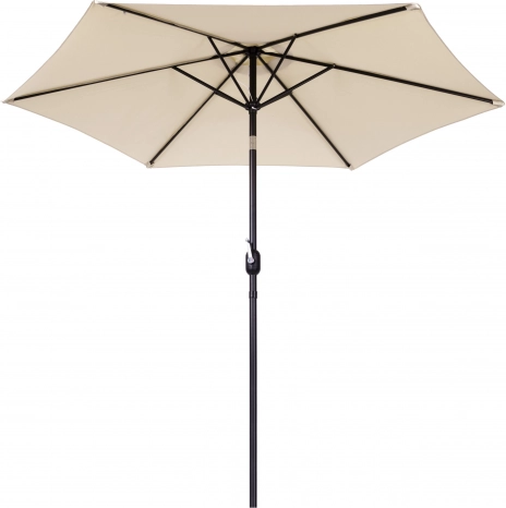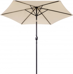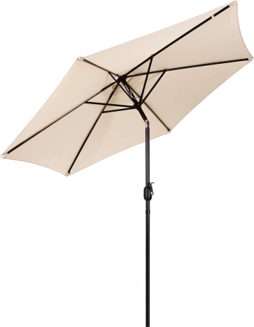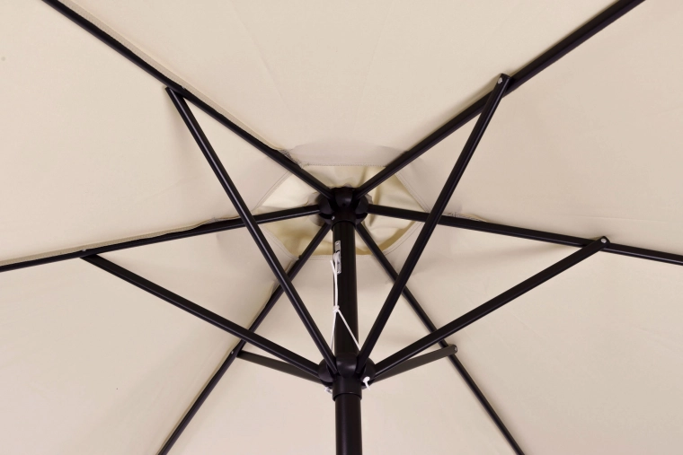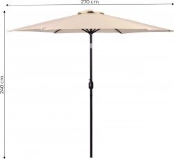 Kvalitní potah z polyesteru 160 g/m² odolá slunci i drobnému dešti, pevný ocelový rám (ø 38 mm) s šesti žebry drží tvar a dodává celku stabilitu. Minimalistický design a béžové provedení se hodí na terasu, zahradu, balkon i kemping.