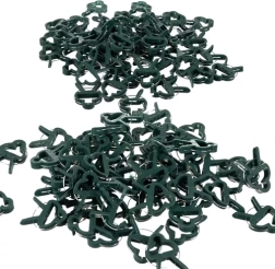 Kombinace PP plastu a pozinkovaného drátu je lehká, pevná a odolná vůči dešti, vlhkosti i UV záření. Zaoblené hrany a pružný přítlak jsou šetrné k pletivům, takže rostliny volně dýchají a dál rostou bez poškození. Klipsy jsou nenápadně zelené a lze je opakovaně používat.