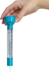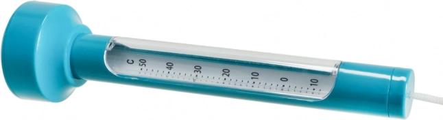 Teploměr je vyroben z odolného plastu a disponuje přehlednou stupnicí v Celsius i Fahrenheit. Pomocí přiložené šňůrky jej snadno upevníte na žebřík, schůdky nebo okraj bazénu, aby neodplouval.