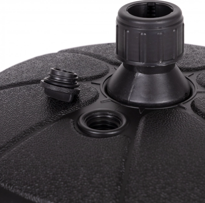 Základna je navržena s univerzálním otvorem o průměru 38 mm, takže je kompatibilní s většinou deštníků na trhu. Speciální šroubovací svorka pomáhá snadno upevnit a zajistit deštník na místě. S odnímatelným víkem, které umožňuje jednoduché plnění vodou, je tento produkt nejen funkční, ale také velmi pohodlný na použití.
