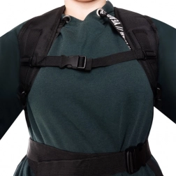 Polstrované ramenní popruhy, nastavitelný hrudní popruh a široký bederní pás stabilizují batoh a rovnoměrně rozkládají zátěž.
