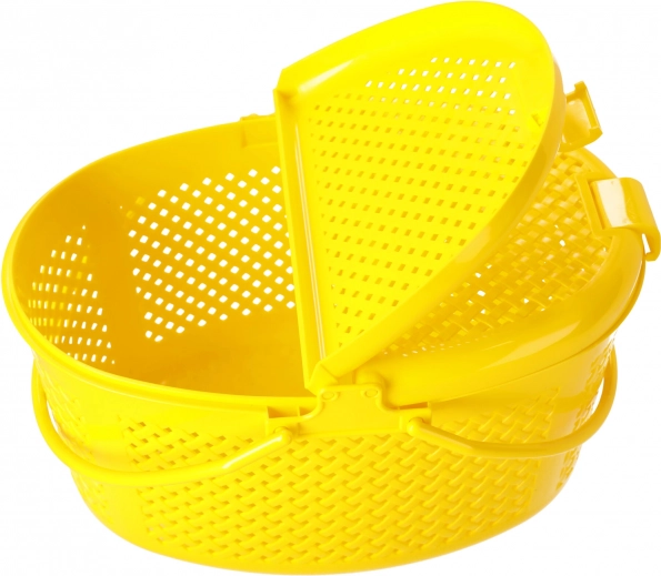Tento uzavíratelný oválný piknikový koš ve žluté barvě kombinuje funkčnost a odolnost. Díky promyšlenému víku rozdělenému na dvě části máte obsah vždy po ruce a zároveň chráněný. Ideální na deky, nápoje i svačiny – ať už míříte do parku, k vodě nebo na zahradu.