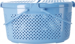 Stylový a praktický piknikový koš v modré barvě pro pohodové výlety do přírody. Vyroben z odolného polypropylenu, je lehký, pevný a snadno udržovatelný. Díky uzavíratelnému hornímu víku ve dvou dílech chrání obsah a po sejmutí víka poslouží jako prostorný nákupní koš.