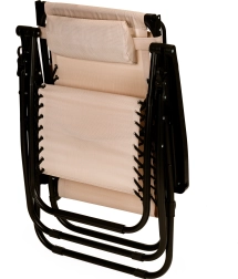 Polohování umožňuje plynulý přechod ze sezení do lehu včetně zero gravity pro maximální odlehčení páteře. Zámky pod opěrkami rukou zajistí úhel přesně podle vašich potřeb – bez nutnosti vstávat. Po sezóně lehátko jednoduše složíte a uložíte, jeho nízká hmotnost usnadňuje přenášení na chatu či k moři.