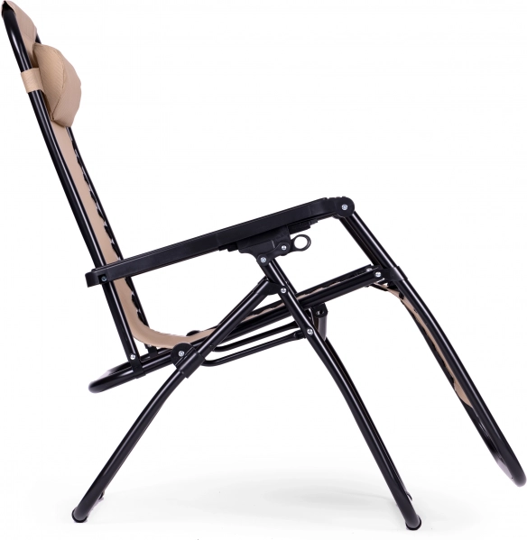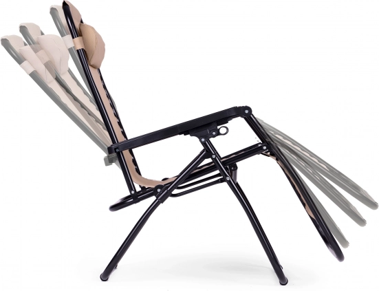 Díky robustní ocelové konstrukci s práškovým lakem je křeslo stabilní v každé poloze. Plynulá regulace sklonu a zámky pod područkami umožní rychlou změnu ze sedu do lehu bez vstávání. Skládací design usnadňuje transport i skladování mimo sezónu.