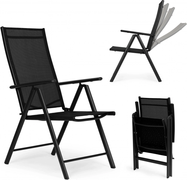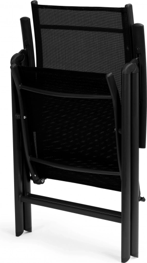 Židle se rychle skládají do kompaktních rozměrů, takže je bez potíží uložíte nebo vezmete na piknik či grilování. Protiskluzové a ochranné koncovky chrání podlahu před poškrábáním. Moderní černé provedení se hodí na terasy, balkony i do zahrad, stejně tak do venkovních restaurací.