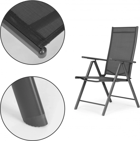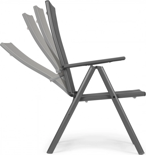Užijte si relax venku kdykoli chcete. Tyto skládací židle s 7 stupni polohování opěradla vám umožní zvolit ideální pozici – od vzpřímeného sezení u stolu až po pohodové lenošení s knihou. Pevný, práškově lakovaný ocelový rám zaručuje stabilitu a dlouhou životnost, zatímco textilen se přizpůsobí tělu a skvěle větrá.