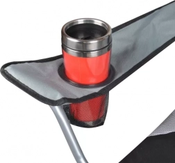 Pro maximální komfort je vybavena područkami a síťovaným držákem na láhev či plechovku. Součástí je i přenosný obal s popruhem, takže židli snadno vezmete s sebou. Přední otvory umožní zajištění kolíky (nejsou součástí) pro ještě větší stabilitu na měkkém podloží.