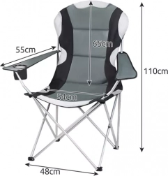 Užijte si pohodlí kdekoliv venku – u vody, na zahradě i na festivalu. Tato černo‑šedá skládací židle kombinuje stabilní kovový rám s pevnou textilií, takže bez problému unese až 120 kg. Ergonomický tvar sedáku a opěradla snižuje únavu i při delším sezení.