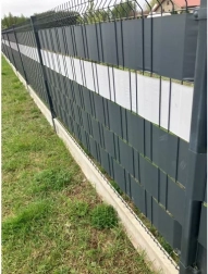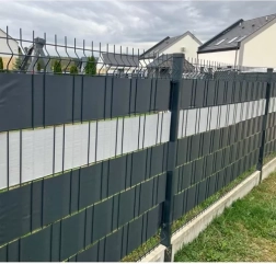 Materiál PVC s UV ochranou nezkřehne a nevybledne ani při dlouhodobém slunečním záření. Páska je vhodná pro ploty 2D/3D, zábradlí balkonů a teras i oplocení technických míst (např. stojanů na odpad).