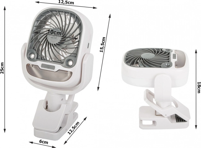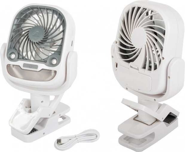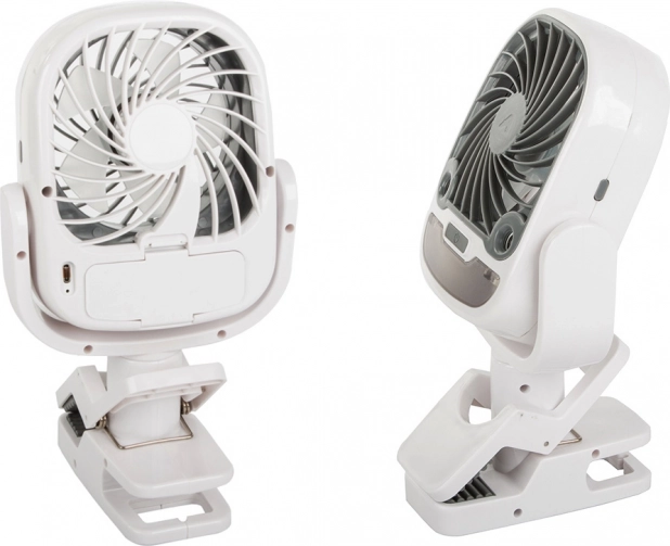 USB napájení a možnost bezdrátového provozu díky dobíjecí baterii zajišťují maximální flexibilitu. Ventilátor lze otočit o 360 stupňů, což poskytuje možnost nastavit ideální směr proudění vzduchu.