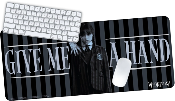 Objevte herní podložku Wednesday - Give Me a Hand, která vyniká nejen svým unikátním designem, ale i vysokou kvalitou materiálů. Tato podložka je vyrobena z prvotřídního polyesteru s mikrovláknovým povrchem, což umožňuje hladký a přesný pohyb myši. Protiskluzová gumová spodní strana zajišťuje, že podložka zůstane stabilně na svém místě i během intenzivního používání.
