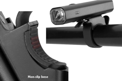 Světlo je snadno připevnitelné na řídítka kola a díky pogumovanému spínači nabízí jednoduché ovládání. Dobíjení přes USB a indikace nabíjení červenou LED diodou zajišťují maximální uživatelský komfort.