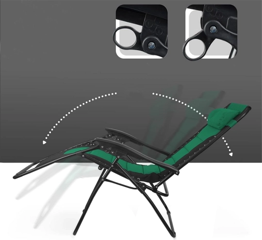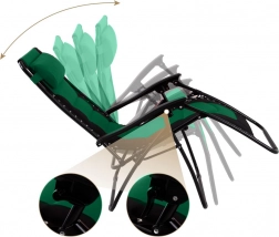 Gravitační systém umožňuje změnit úhel lehátka a uzamykací mechanismus zajistí bezpečné použití. Perfektní pro opalování či podřimování.