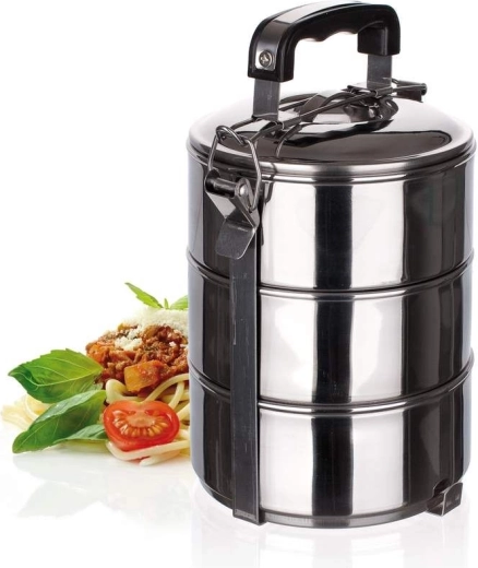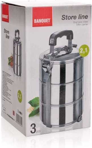 Sada jídelních nádob BANQUET Story Line je ideální pro každodenní použití – od přenášení hotových pokrmů až po skladování potravin v lednici. Tři oddělené nerezové misky udrží jídlo přehledně a bez míchání chutí. Robustní provedení z nerezové oceli o tloušťce 0,5 mm zajišťuje dlouhou životnost a snadnou údržbu.