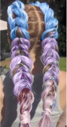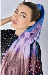Kombinace modré, fialové a růžové s jemnými třpytivými prameny okamžitě rozzáří každý účes a dodá mu jedinečný charakter.