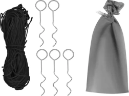 - Stabilní konstrukce: sklolaminátové pruty, možnost ukotvení šňůrami a kolíky