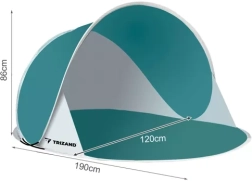 Užijte si pohodlí a stín u vody s plážovým stanem TRIZAND. Polootvorená POP-UP konstrukce se po vyjmutí z obalu rozloží téměř okamžitě, stabilitu zajišťují pružné sklolaminátové pruty. Stan spolehlivě chrání před větrem a sluncem, tkanina s UV filtrem UPF 30+ snižuje dopad škodlivého záření. Vodní sloupec 300 mm zajistí ochranu před slabým deštěm či mrholením.