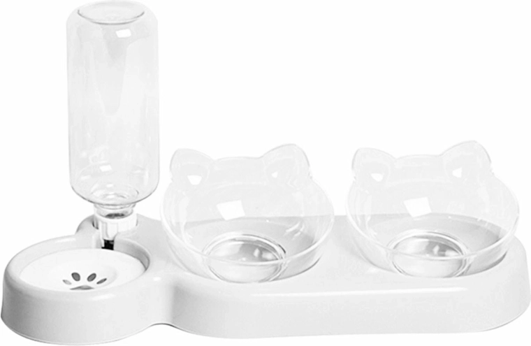 Praktická dvojitá miska pro kočky s integrovaným automatickým dávkovačem vody o objemu 0,5 l. Díky naklonění misek o 15° je krmení pohodlnější a šetrné k krční páteři. Automatické doplňování vody zajišťuje stálý přístup k čerstvé vodě, zatímco kompaktní rozměry a snadno omyvatelný plast se skvěle hodí do menších prostor.