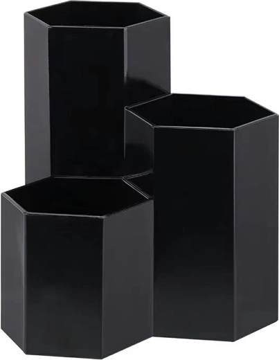Organizér na kosmetické doplňky se třemi oddělenými přihrádkami je skvělým řešením pro uložení vaší kosmetiky. Díky rozdílné výšce jednotlivých částí je vhodný pro různé délky nástrojů. Tento organizér zjednodušuje udržení pořádku na vašem stole a zároveň se svým estetickým a decentním designem přizpůsobí jakémukoli prostředí.