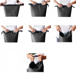 Vak je lehký a přitom velmi odolný. Rychlé „klik“ zapínání umožní přichycení k dalšímu vybavení, nastavitelný ramenní popruh usnadňuje přenášení. Skvěle se hodí pro uložení telefonu v pouzdře, oblečení, ručníků, bot, drobné elektroniky či potravin.