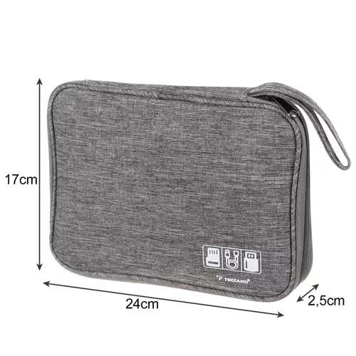 Už žádné zauzlované kabely a chaotické dno batohu. Tento šikovný organizér kombinuje lehký a odolný polyester s praktickým členěním, takže uložíte USB kabely, nabíječky, sluchátka i redukce bezpečně a přehledně. Kompaktní rozměry 24 × 17 × 2,5 cm se skvěle vejdou do tašky či příručního zavazadla.