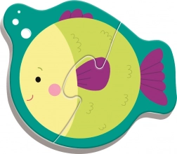 Každé z 4 zvířátek má pouze 2 velké dílky. Děti snadno pochopí princip a rychle zažijí radost z hotového obrázku.