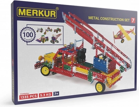 MERKUR 7 je robustní klasická kovová stavebnice, která nabízí univerzální sadu dílů doplněnou o speciální komponenty pro stavbu velkého požárního auta, velkých jeřábů a mnoha dalších funkčních modelů. Díky přehledné návodové knížce postavíte krok za krokem desítky atraktivních konstrukcí.