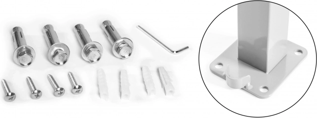 - Uchycení na stěnu a do podlahy, součástí balení kotevní příslušenství